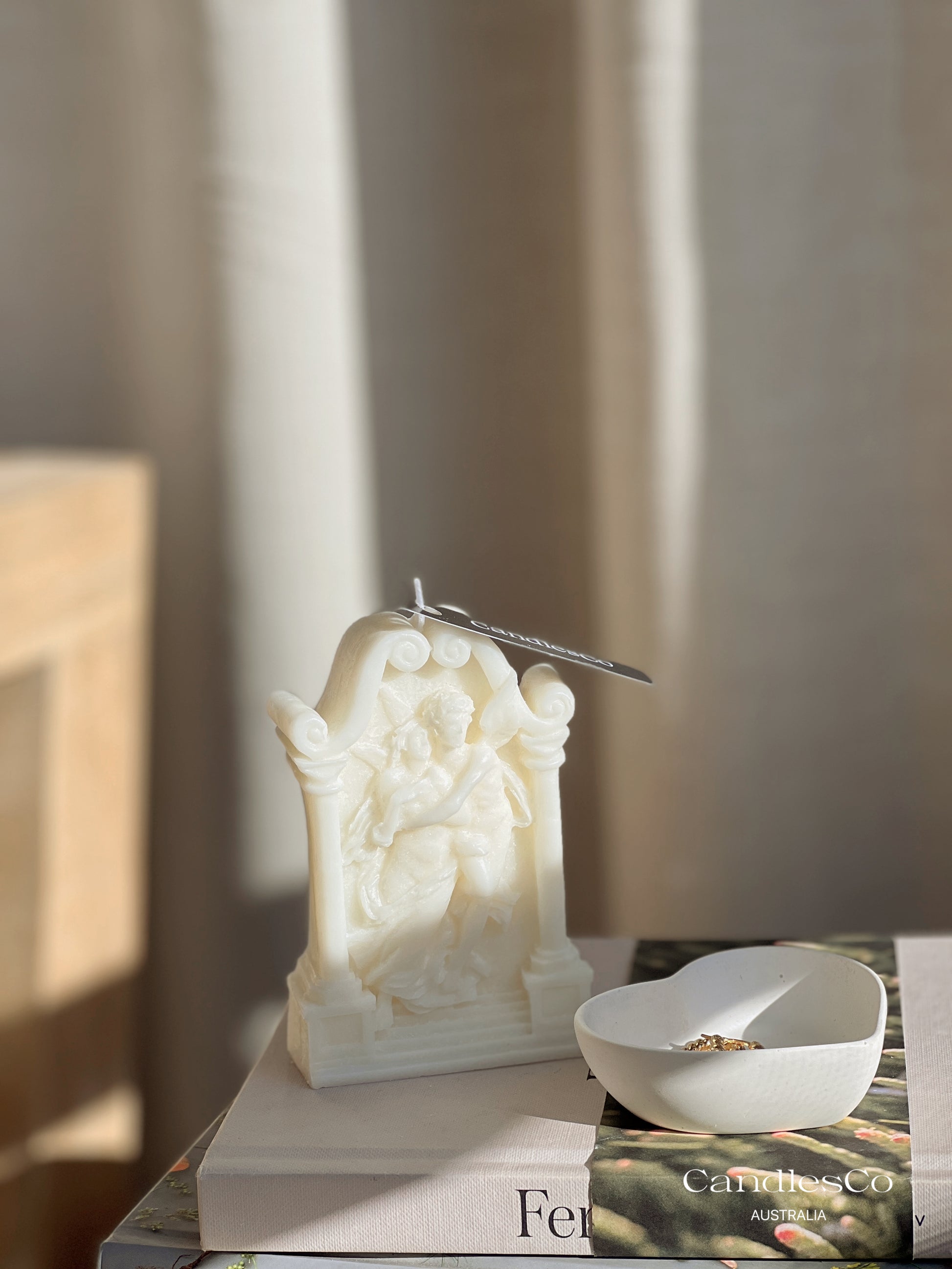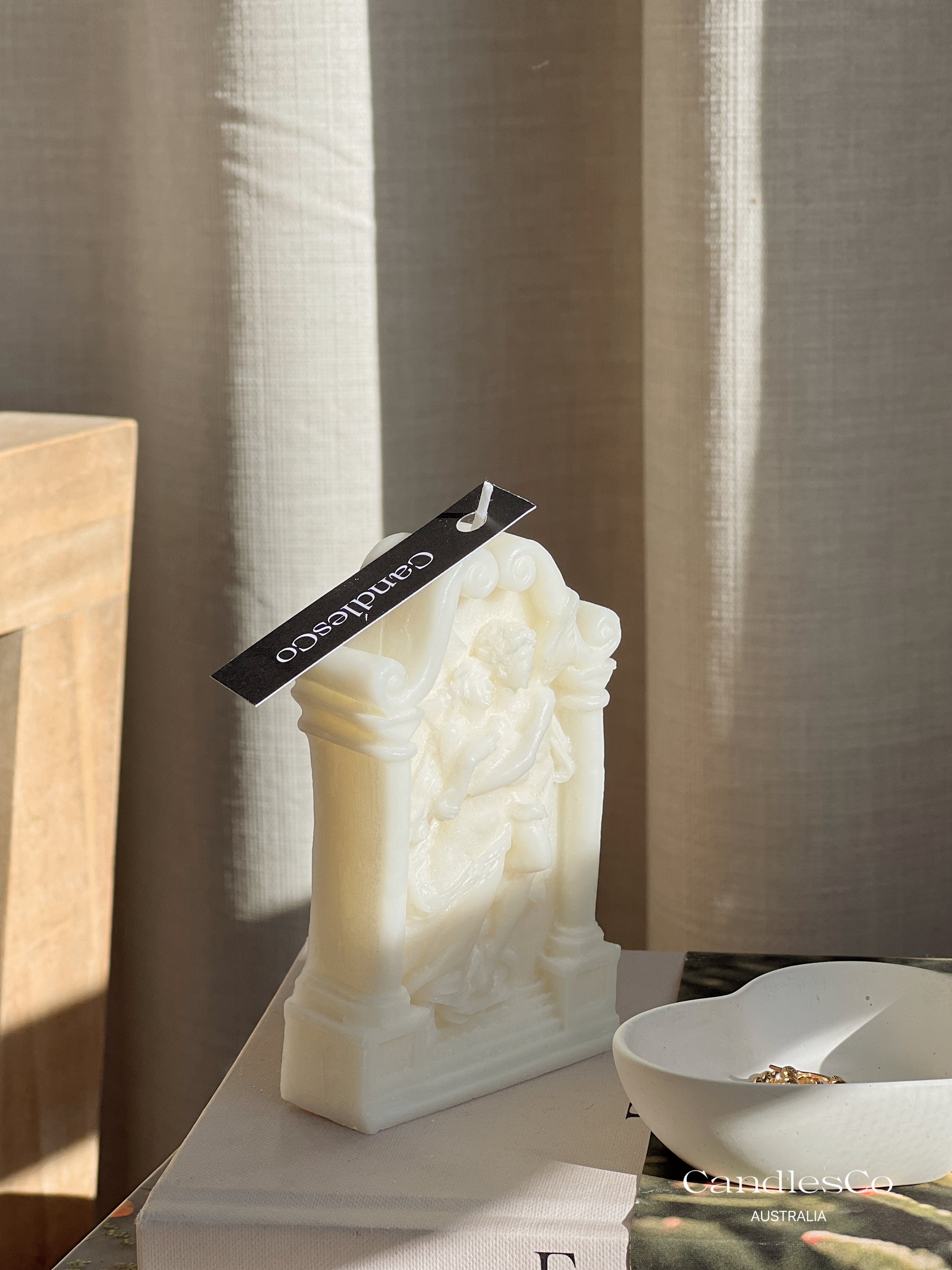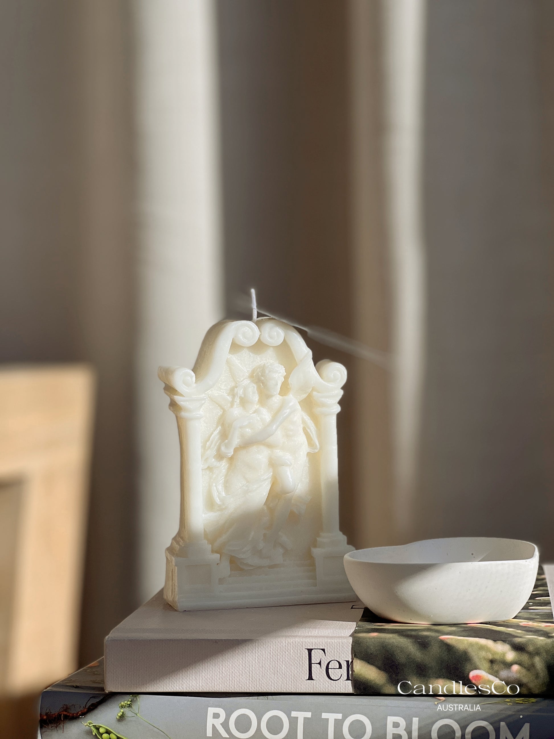 Due to the nature of these types of candles, once lit, wax will melt in an unpredictable manner. To avoid damage to your surfaces, please place your candle on a large ceramic dish, on a flat surface before lighting. Each candle is individually hand crafted, and like the ancient and contemporary sculptures that inspire them, small imperfections such as micro air bubbles or light frosting may be expected between pieces.