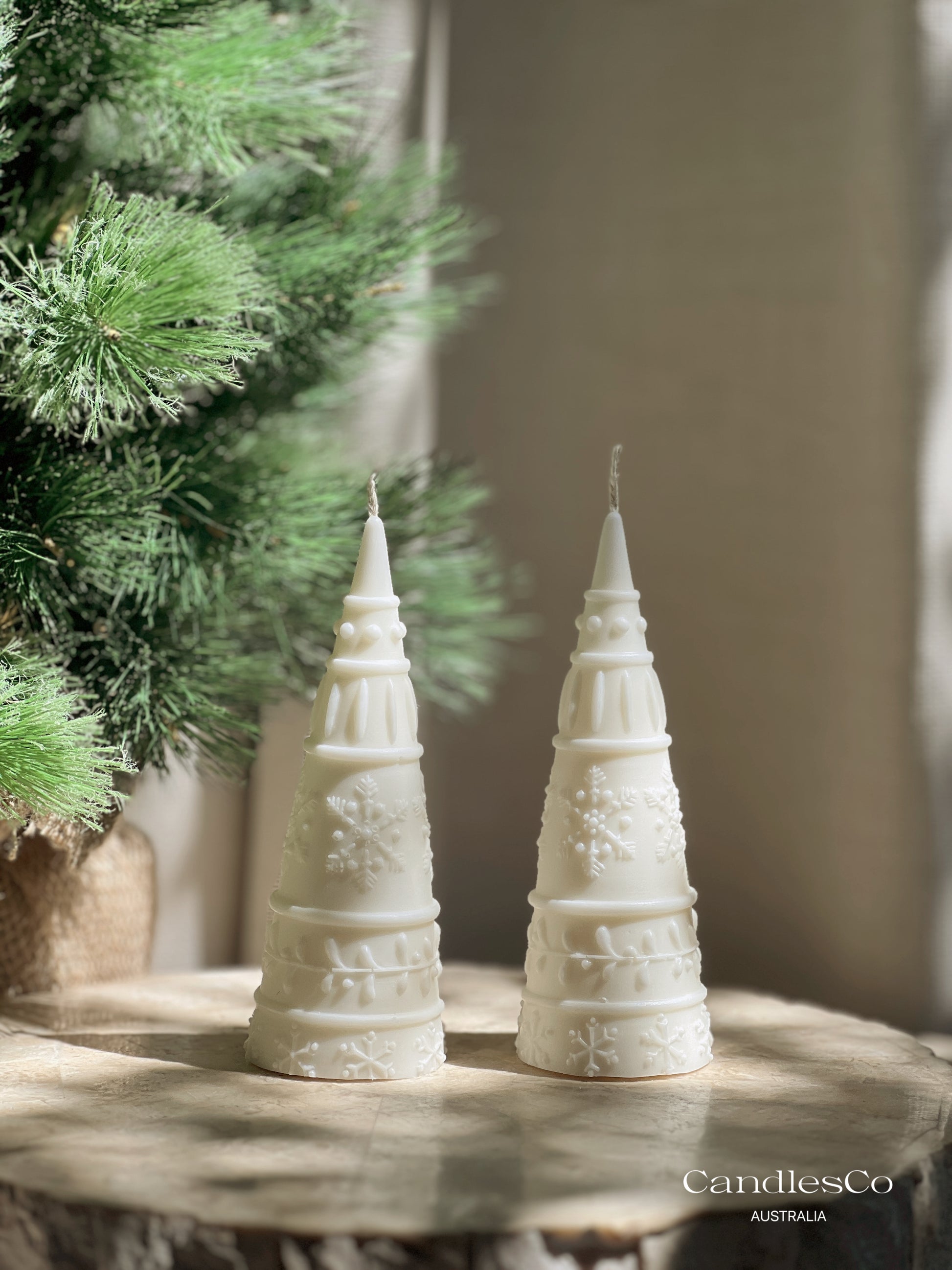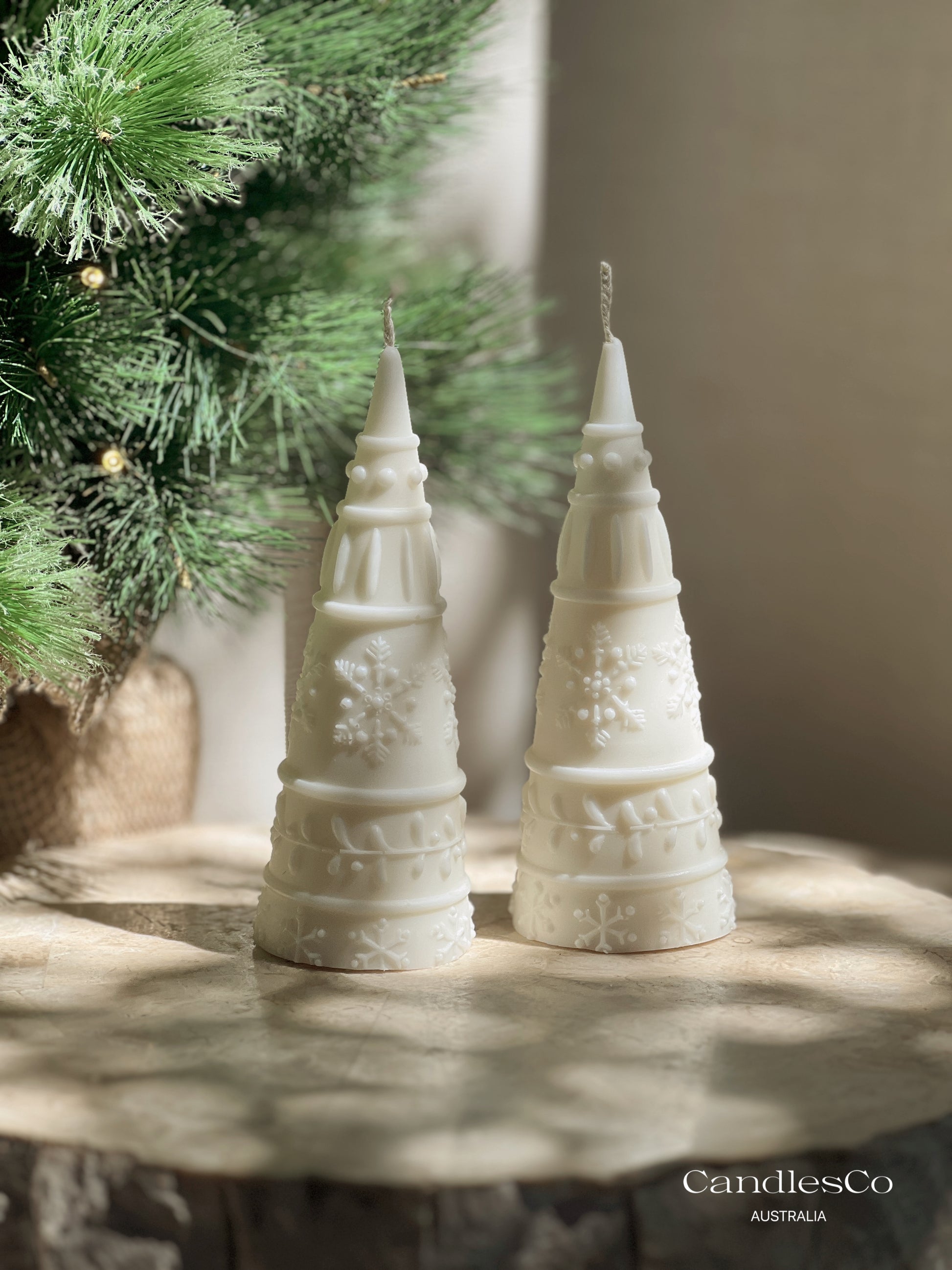 Create a warm and timeless Christmas atmosphere with our Snowflake Tower Tree Candle, beautifully handcrafted in Perth, Australia. Designed with intricate snowflake detailing and a softly tapered silhouette, this piece brings elegance and festive charm to any home.